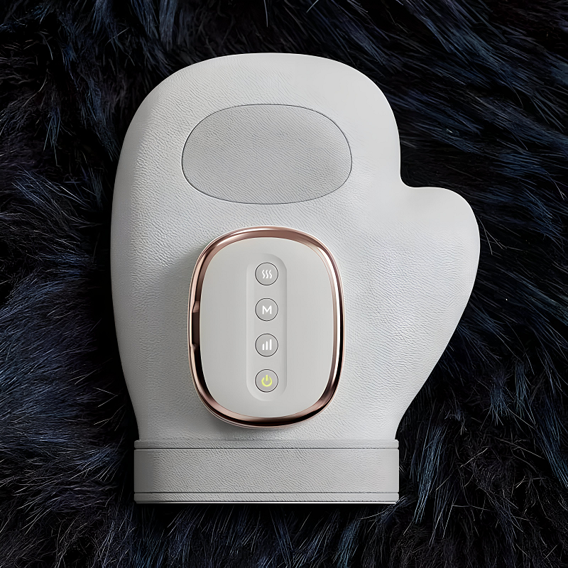 The ThermaPalm Massager uses vibration, heat, and air compression to ease hand and finger tension, with an ergonomic design for comfortable daily use.